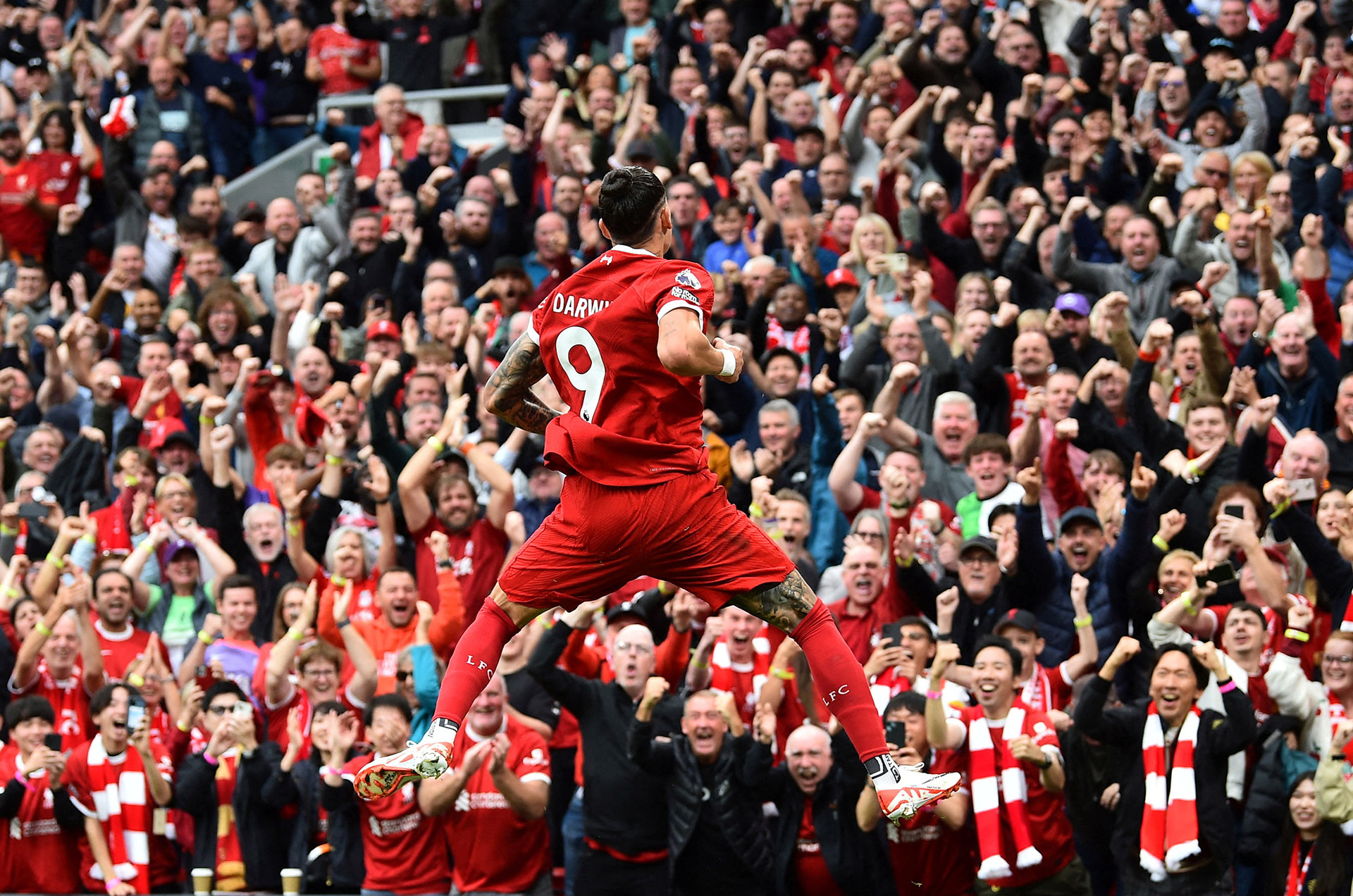 Liverpool hat in der englischen Premier League den fünften Sieg in Serie geholt. Das Team von Trainer Jürgen Klopp setzte sich mit 3:1 (1:1) gegen West Ham United durch. Die Reds gingen im eigenen Wohnzimmer in Anfield durch einen Strafstoß von Mohamed Salah (16.) in Führung. Der Ägypter war zuvor selbst im Strafraum gefoult worden. Kurz vor der Halbzeitpause traf Jarrod Bowen (42.) zum Ausgleich für die Gäste aus London. Doch Darwin Núñez (60.) und Diogo Jota (84.) ließen die Reds jubeln. Liverpool rückte damit auf Tabellenplatz zwei vor. Tabellenführer ist Manchester City nach sechs Siegen in sechs Spielen.